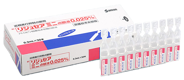 当院では、低濃度アトロピン点眼薬「リジュセア®ミニ点眼液0.025%」を用いた治療を行っています。